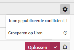 Een gepubliceerd conflict verdwijnt uit het overzicht met conflicten, zo wordt de lijst steeds korter als u verder werkt en ziet u precies wat er nog moet gebeuren. Via de instellingen-knop bovenin bekijkt u ook de al gepubliceerde conflicten.